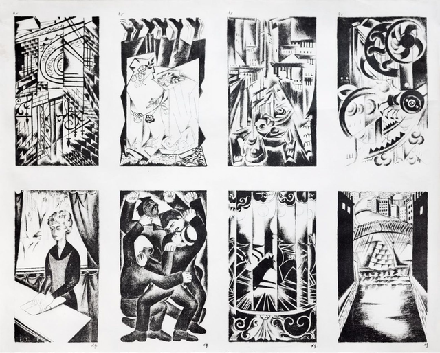 Suite complète des lithographies réalisées pour l'ouvrage d'Alexandre Roubakine Gorod (La Cité), 1920